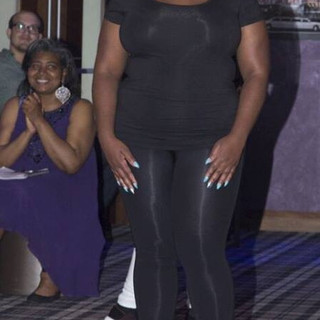 Natina-Mae Whitter escorted by her dress designer; Devon Thomas